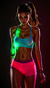 Introduisez l'énergie du studio directement chez vous. Cette impression sur verre acrylique représente une femme puissante et athlétique sous une lumière néon – une affirmation de force, de discipline et de modernité.
