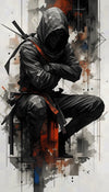 Der Schattenkrieger verkörpert Ruhe unter Spannung, Kontrolle im Chaos. Die geduckte Haltung, das verdeckte Gesicht und die klaren Linien erzeugen eine Atmosphäre von Fokus und innerer Stärke. Kein Lärm, keine Pose – nur Präsenz.